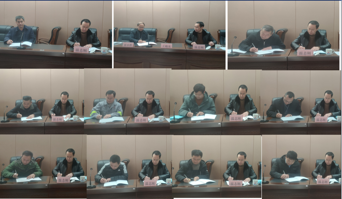 大會第三項,由公司董事長、總經(jīng)理溫承橋與生產(chǎn)副總溫志剛、安環(huán)部長程翔;生產(chǎn)副總溫志剛和各項目部負(fù)責(zé)人簽署各級《安全生產(chǎn)責(zé)任狀》。